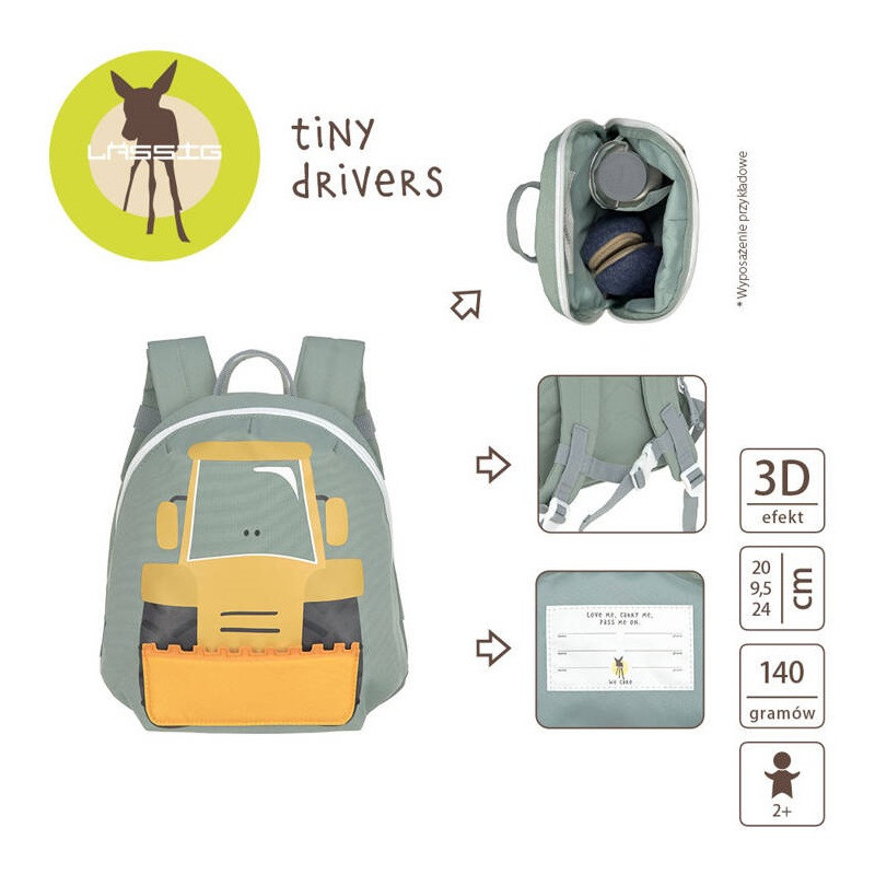 Wyjątkowo uroczy plecaczek z motywem spychacza.