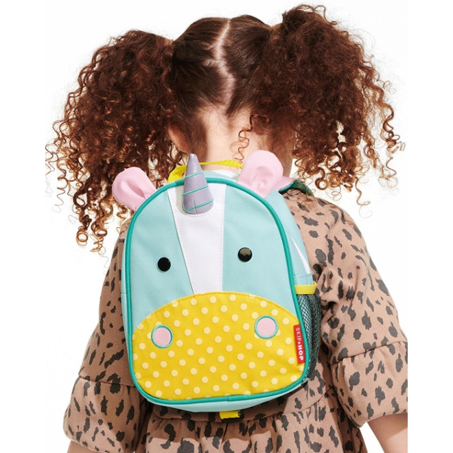 Plecaczek z motywem jednorożca dostosowany jest gabarytami do sylwetki małego dziecka,