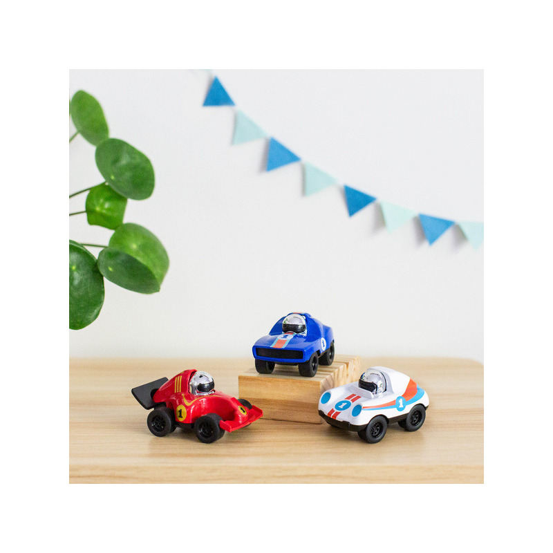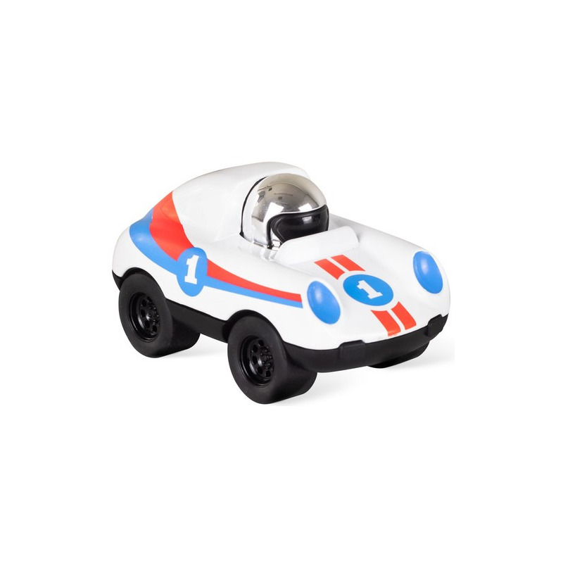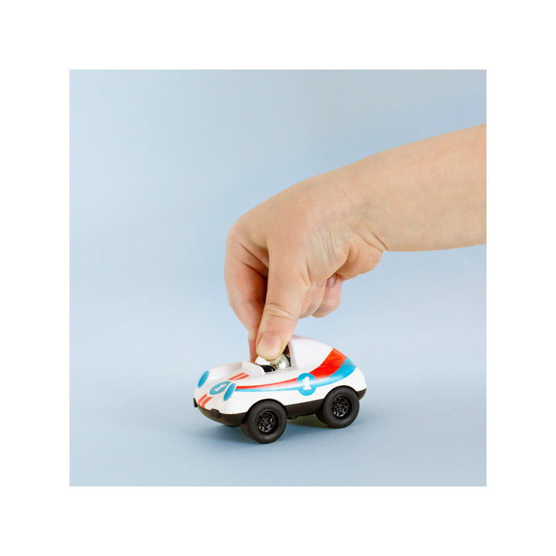 Ten turbo-szybki, retro mini samochód wyścigowy jest gotowy do jazdy! Nie potrzebuje baterii. Dzieci będą się świetnie bawić ścigając się zwinnymi, małymi autkami, aktywując mechanizm wyścigowy prostym naciśnięciem.