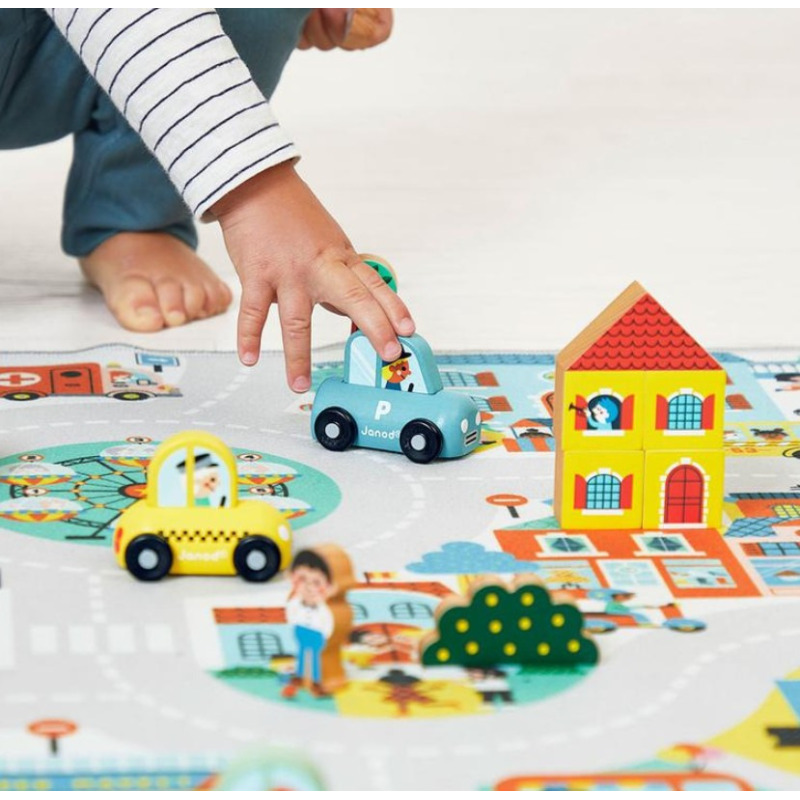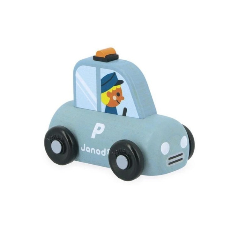 Radiowóz z serii Cross Roads marki JANOD to doskonałe uzupełnienie maty-dywanu do zabawy z drogą Miasto z tej samej kolekcji. Pojazd wykonany jest z drewna, posiada poręczne kształty dopasowane do małych rączek, jasnoniebieski kolor, a dzięki kółkom łatwo porusza się po różnych powierzchniach. W środku znajduje się uśmiechnięty policjant, co zachęca malucha do snucia własnych historii i kreatywnej zabawy.