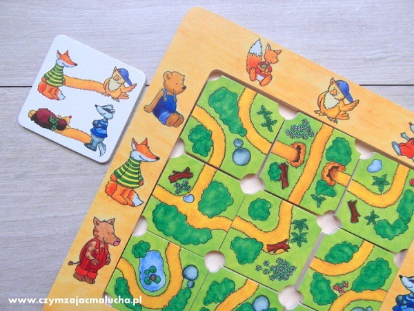 Jego mama spośród wielu różnych gier wybrała drewniany zestaw polegający na tworzeniu ścieżek w lesie, by zwierzątka mogły się nawzajem odwiedzać.