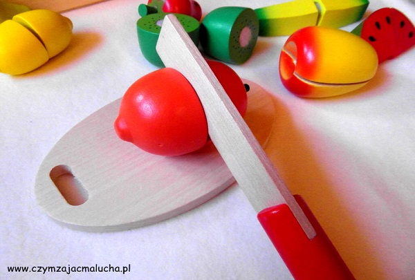 Mama Malucha przekonała się do drewnianych zabawek i postawiła na owoce do nauki krojenia. Okazało się, że jej synek od razu zrozumiał o co chodzi i bardzo polubił nową zabawkę.