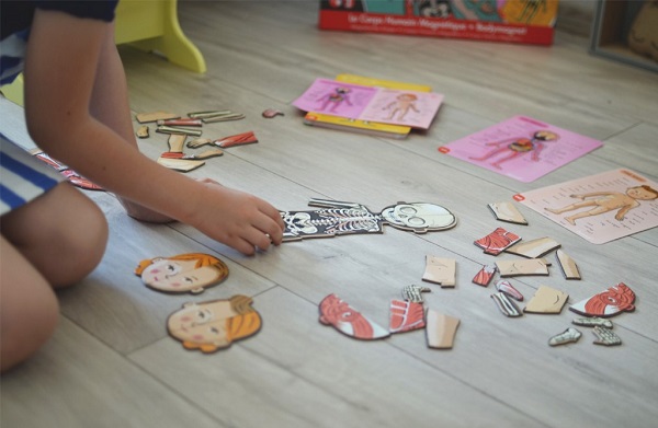 Jedną z pomocnych zabawek jest magnetyczna układanka Ciało człowieka marki Janod.