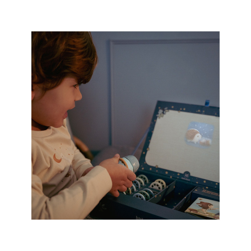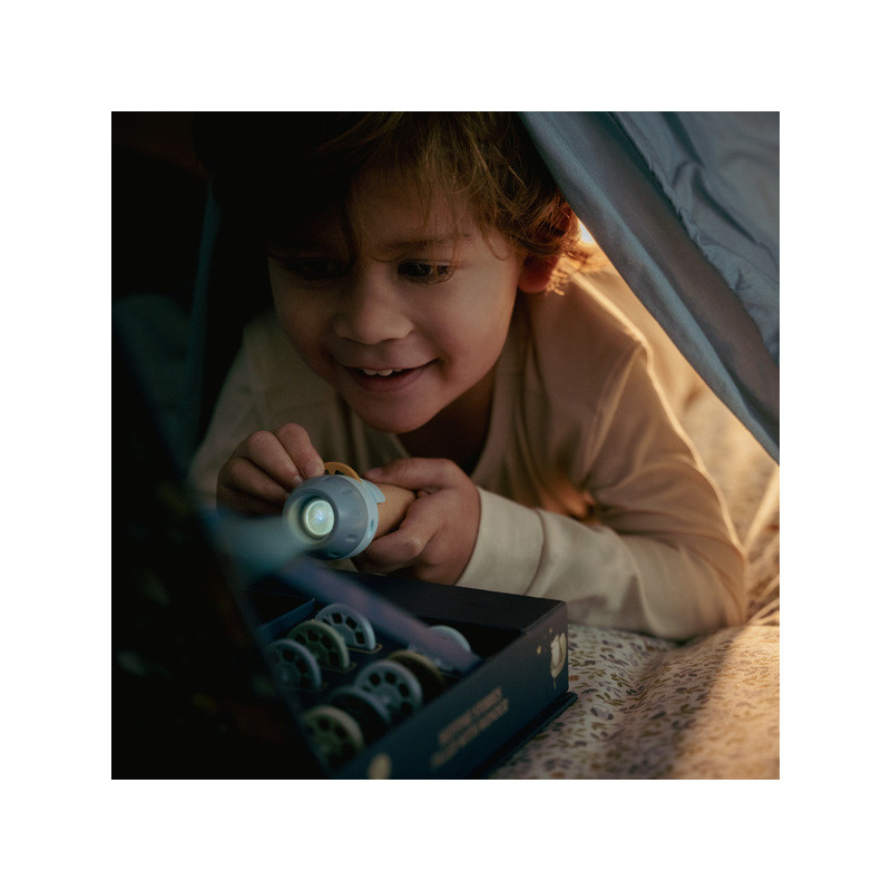 Szukacie sposobu na wspólne spędzenie wieczoru? A co powiecie na sens bajek z projektora? To wyjątkowy zestaw dla dzieci, które uwielbiają słuchać opowieści i wymyślać własne, pięknie ilustrowany do wyświetlania bajek na pudełku, ścianie lub suficie. Każda historia jest uzupełniona pasującą książeczką z obrazkami. Włóżcie historyjkę do lampki, włączcie i seans gotowy!