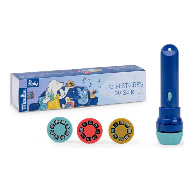 Projektor do wyświetlania obrazków od Moulin Roty to nietuzinkowe, magiczne ilustracje, które tym razem przeniosą Was do fantazyjnego świata przygód bohaterów kolekcji Puce & Pilou. Do projektora załączono trzy krążki, każdy z nich ma 8 slajdów.