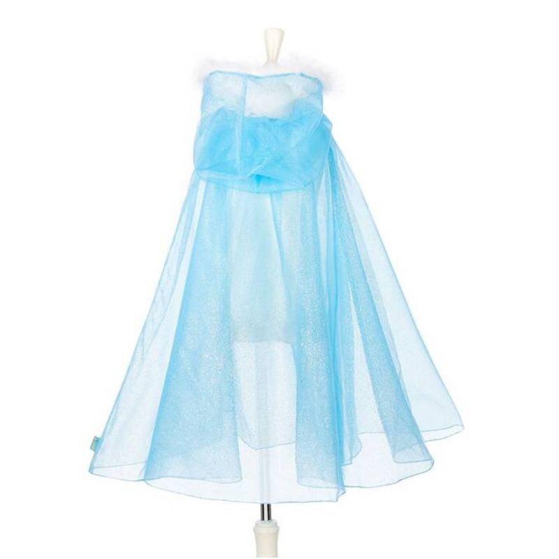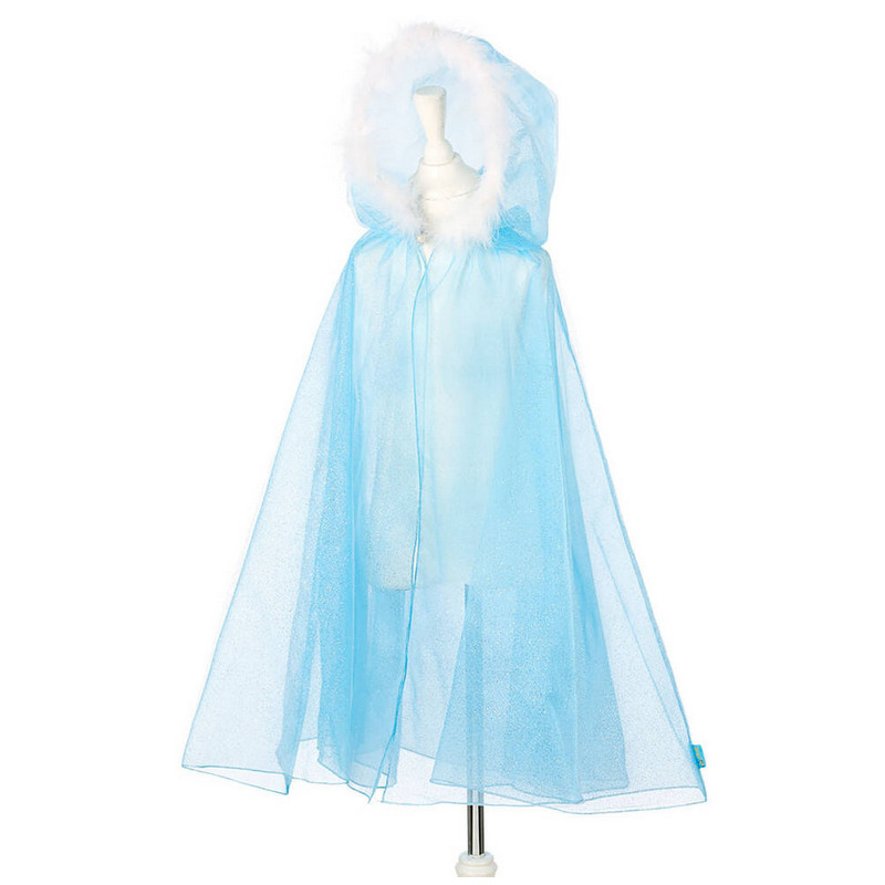 Kostium peleryna królowej śniegu z obszernym kapturem to przepiękne, kunsztownie wykonane przebranie dla dziewczynki. Peleryna zachwyca dbałością o detale. Jest wykonana z dwóch warstw połyskującego niebieskiego tiulu, zwiewna i prześwitująca.
