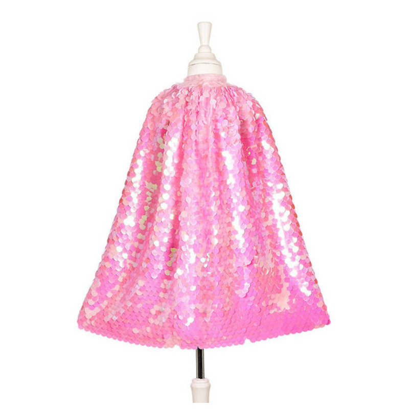 Kostium peleryna z cekinami Laurence to przepiękne przebranie dla dziewczynki. Peleryna jest pokryta dużymi okrągłymi holograficznymi różowymi cekinami, które tworzą spektakularny efekt. Zapinana jest pod szyją na guziczek-perełkę ze srebrną pętelką.