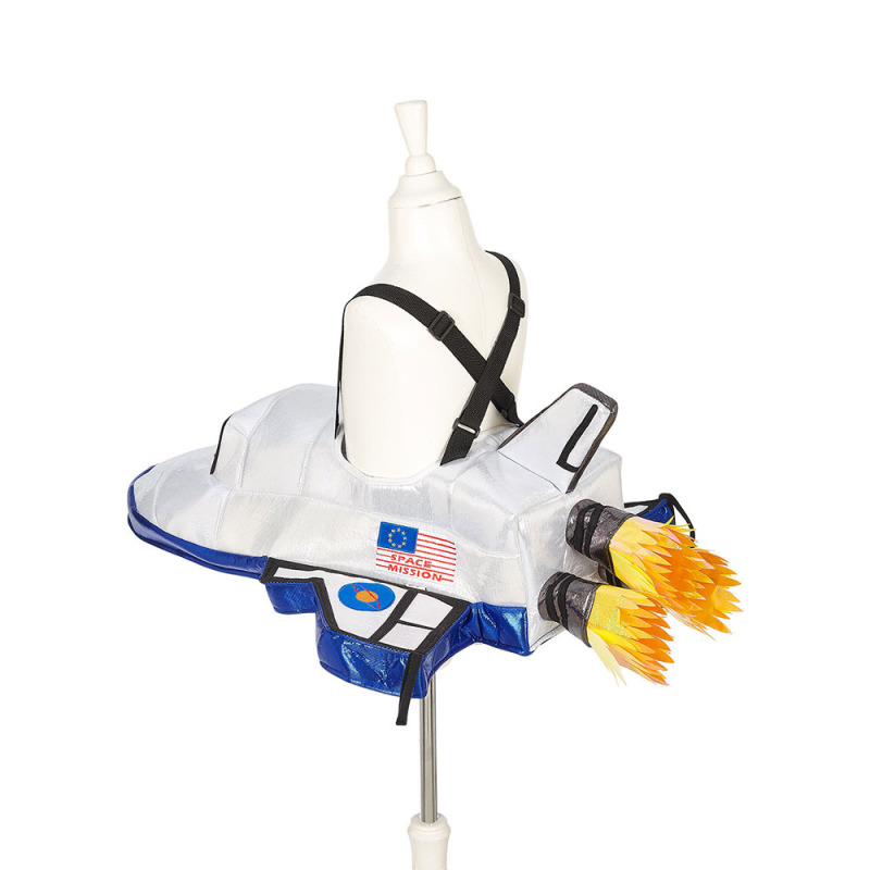 Kostium rakiety dla astronauty to niezwykle efektowne przebranie typu ride-on, które z pewnością przyciągnie uwagę. Duża, trójwymiarowa rakieta w srebrno-niebieskich kolorach ma wydłużony dziób, boczne skrzydła i płomienie imitujące pracujące silniki z tyłu. Dzięki szerokim szelkom i dużemu otworowi strój jest lekki, wygodny i łatwy do samodzielnego założenia. Może pełnić rolę niezależnego kostiumu lub stanowić doskonałe uzupełnienie stroju astronauty.