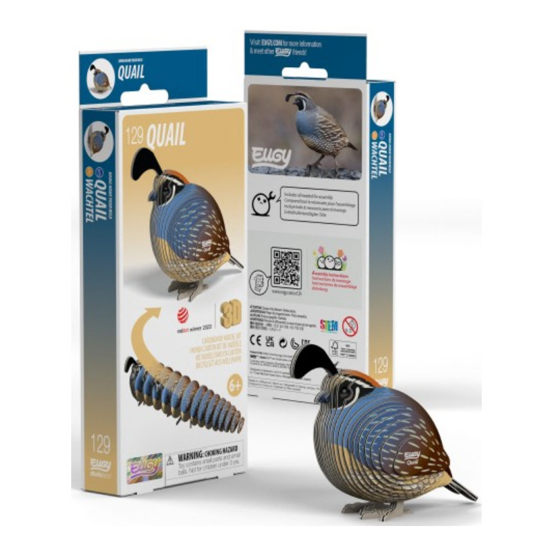 Wyjątkowa układanka 3D zachwyci miłośników ptaków. Ten zestaw pozwala na złożenie Przepiórki Kalifornijskiej. Zawiera ponumerowane elementy oraz nietoksyczny klej. Układanka wykonana jest z przyjaznego dla środowiska, kartonu pochodzącego z recyklingu i farby na bazie ryżu.