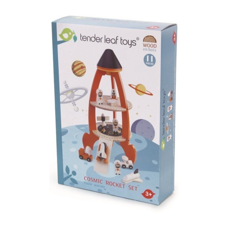Drewniana rakieta kosmiczna będzie idealnie współgrać z pozostałymi kosmicznymi zabawkami: