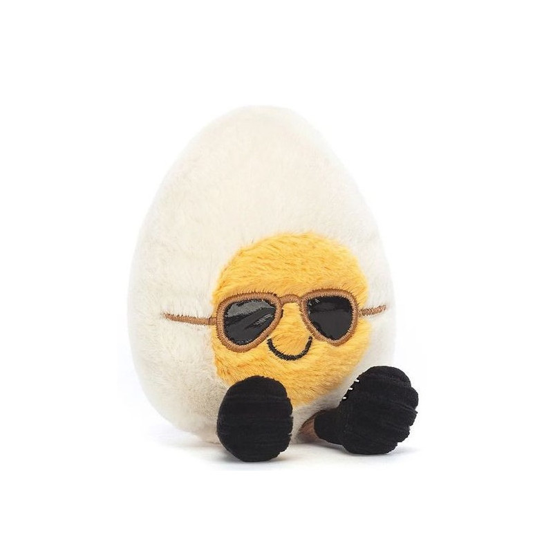 Do rodziny pluszowych jajek jellycat dołącza jajko Luzak. Ma futerko w kolorze kremowym, uśmiechniętą buzię, okulary przeciwsłoneczne i wszyte na stałe czarne buciki. Można się nim bawić i przytulać. Pluszak został uszyty z najwyższej jakości, trwałych i bezpiecznych dla dzieci materiałów. Wewnątrz jajeczka znajdują się kuleczki, które można poczuć pod paluszkami podczas ściskania.