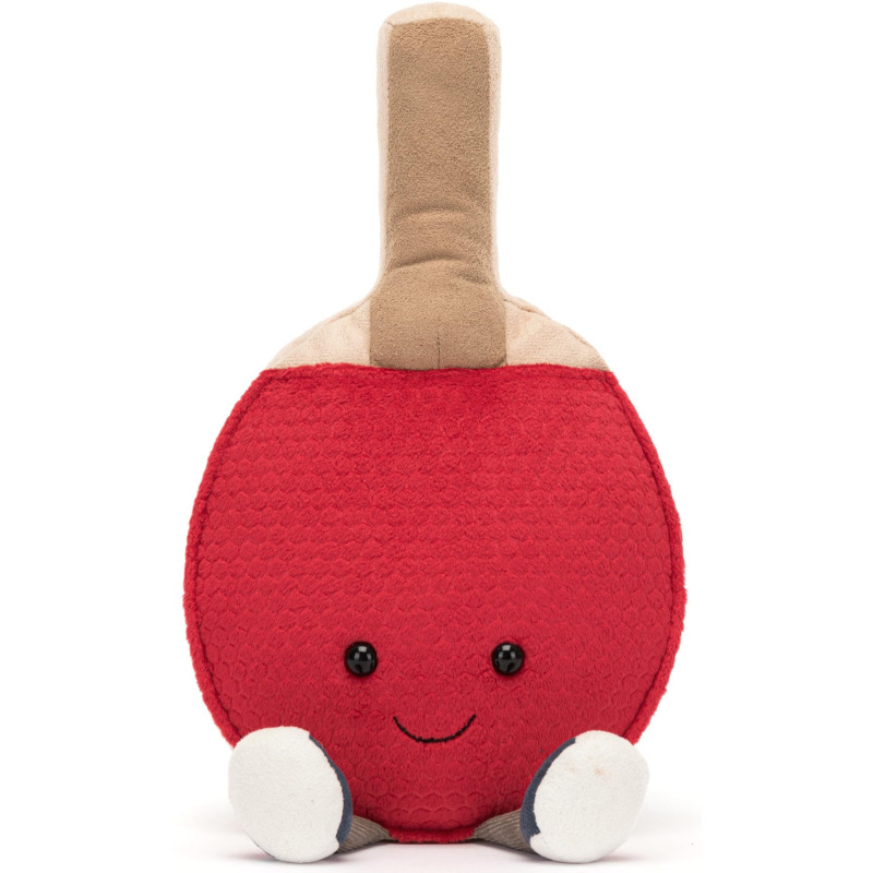 Takiej przytulanki jeszcze nie widzieliście! Jest wyjątkowa pod każdym względem! Wesoła rakietka do tenisa stołowego to bardzo mięciutka i przyjemna w dotyku przytulanka. Ma beżową rączkę z logo Jellycat, uśmiechniętą buźkę, błyszczące oczka i sztruksowe nóżki. Idealnie nadaje się do zabawy i przytulania. Zabawna forma wywoła uśmiech nie tylko na buzi dziecka!