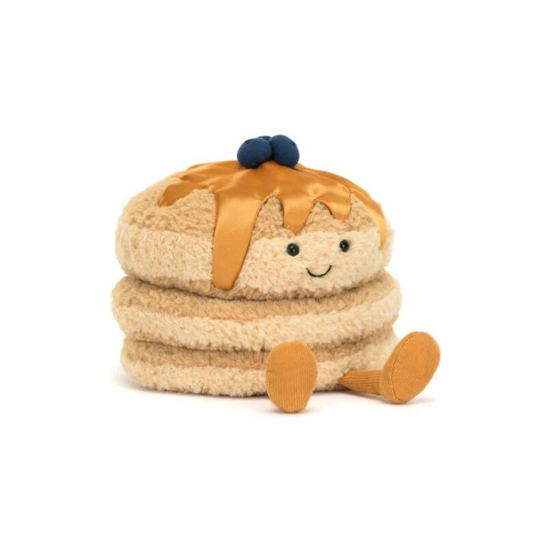 Takiej przytulanki jeszcze nie widzieliście! Jest wyjątkowa pod każdym względem! Ten torcik z naleśników, to trzy puszyste, grube placuszki obficie polane aksamitnym syropem klonowym. Zwieńczone koroną z borówek, wesołym uśmiechem i karmelowymi nóżkami. Zabawna forma wywoła uśmiech nie tylko na buzi dziecka!