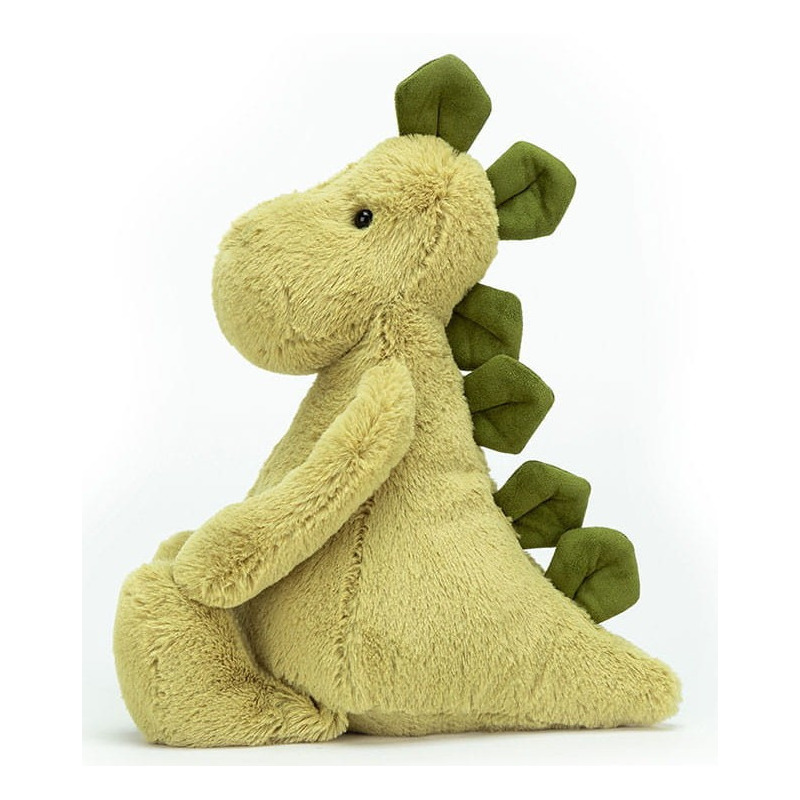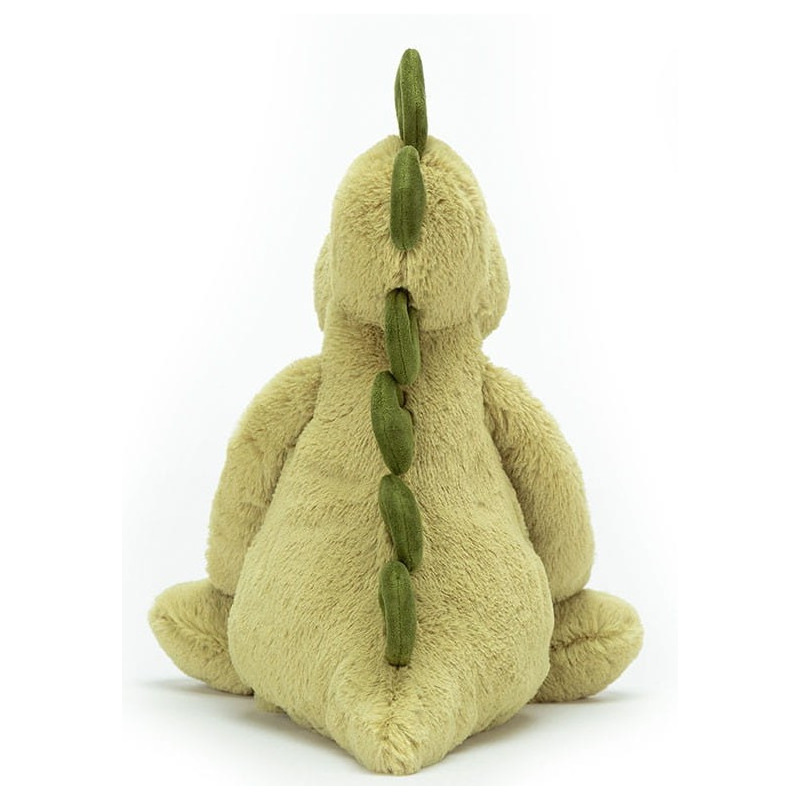 Sympatyczny dinozaur z mięciutkim oliwkowym futerkiem. Można się z nim bawić, przytulać i bezpiecznie zasnąć w jego towarzystwie!
