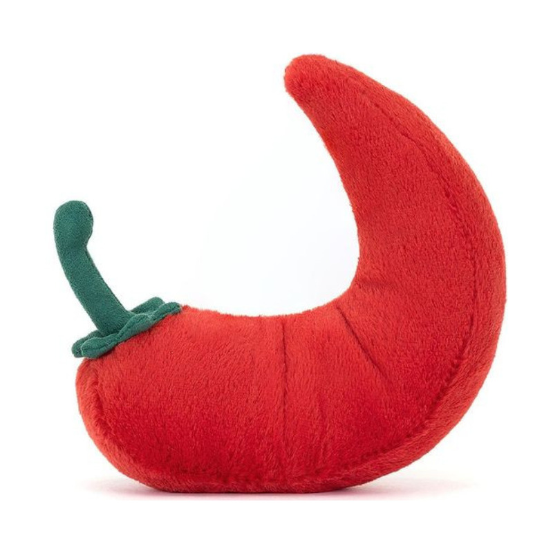 Papryczka Chilli to wesołe i nieco zwariowane warzywo lubiące zabawę i przygody. Czy papryczka chilli może być słodka? Ta zdecydowanie taka jest! Do tego bardzo milutka, mięciutka i puchata. Ma futerko w kolorze czerwonym, zabawną fryzurę z zielonych listków, miłą buźkę i sztruksowe stópki. Można się z nią bawić i przytulać.