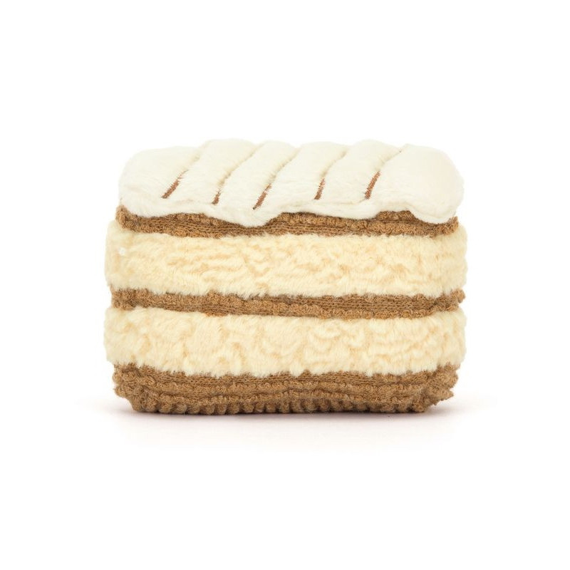 Jedyna w swoim rodzaju napoleonka Milie czyli apetyczne, warstwowe ciastko po brzegi wypełnione puszystym kremem patissiere. Urocze mille-feuille zwieńczone jest grubą warstwą kremowego lukru z czekoladowym akcentem. Do tego miły uśmiech i śmieszne nóżki – idealne do przytulania i zabawy!