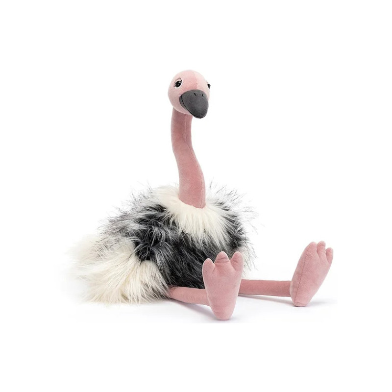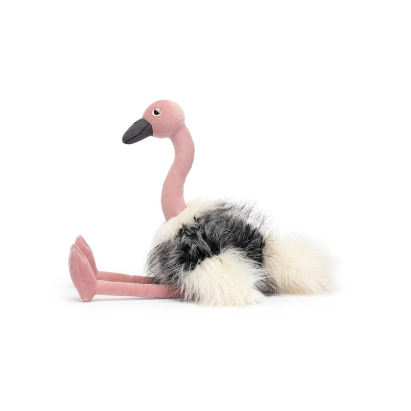 Ten elegancki struś to wyjątkowy pluszak, który ma długą szyję w kolorze malinowego sorbetu i ogromne, szybkie nogi z mocnymi stopami. Do tego robiąca wrażenie chmura wirujących piór w kolorze czarnym i kremowym i przemiły wyraz dzióbka. Ramonda jest gotowa, by wskoczyć na wybieg!