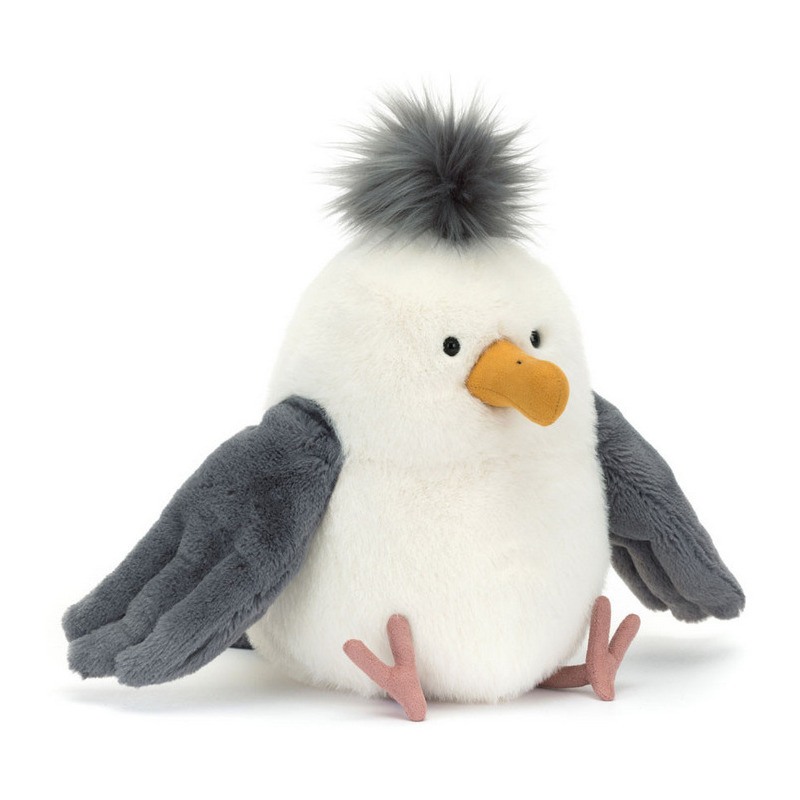 Mewa Chip to uroczy ptaszek o błyszczących, ciekawskich oczkach, żółtym dziubku, mięciutkim białoszarym upierzeniu, uroczym ogonku, z bujną czupryną i zamszowymi łapkami. Wspaniały towarzysz zabaw i piękna dekoracja pokoju dziecięcego.