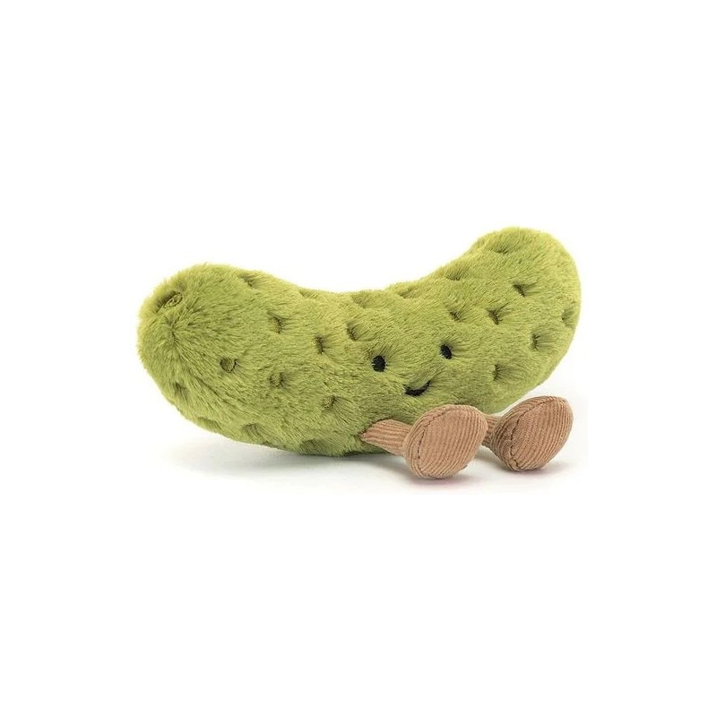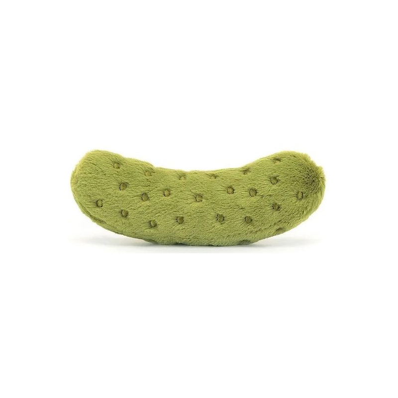 Zabawny Ogórek Korniszon marki Jellycat to bardzo miły i przyjemny w dotyku pluszak. Ma zielone futerko z haftowanymi piegami, miłą buźkę i orzechowe, sztruksowe buciki. Można się z nią bawić i przytulać.