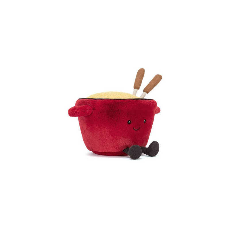 Garnuszek Fondue to uroczy pluszak marki Jellycat London w kształcie klasycznego naczynia do fondue z charakterystycznymi rączkami oraz sztruksowymi stópkami. Na górze znajduje się żółty „berecik” z sera, z którego wystają dwa widelczyki gotowe do maczania w pysznie wyglądającym serze. To oryginalna maskotka, idealna do przytulania, zabawy i dekoracji, a także doskonały prezent dla małych i dużych miłośników wyjątkowych pluszaków Jellycat.