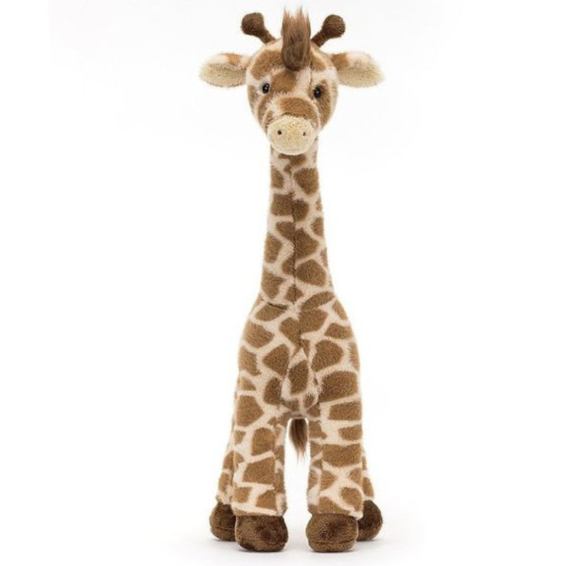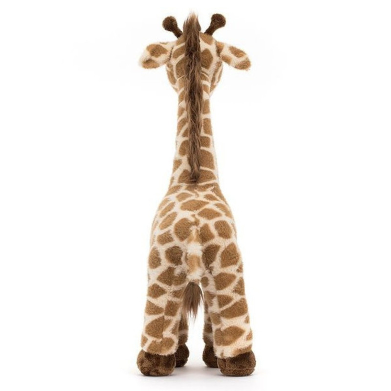 Żyrafa marki Jellycat to bardzo miły i przyjemny w dotyku pluszak. Ma wspaniałe futerko w piękne karmelowe łaty, uśmiechniętą buźkę, sterczące uszka, bujną grzywę i jest świetna do ciągłej zabawy i przytulania.