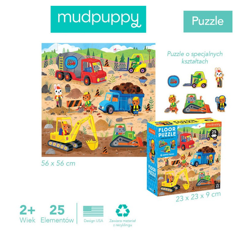 Zestaw puzzli podłogowych Plac budowy składa się z 25 bardzo dużych,