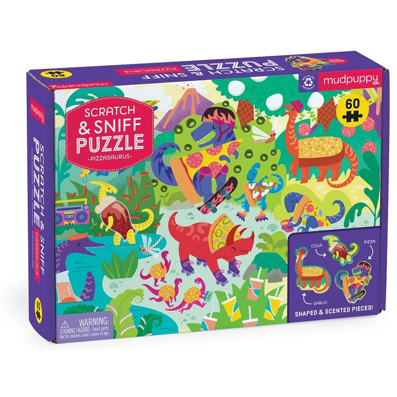 PIZZASAURUS tekturowe puzzle sensoryczne z elementami zapachowymi 60 el.