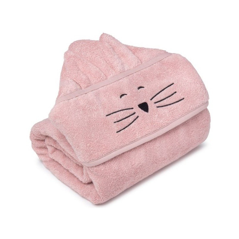 Ręcznik posiada urocze uszka i haft na kapturku z motywem kotka.