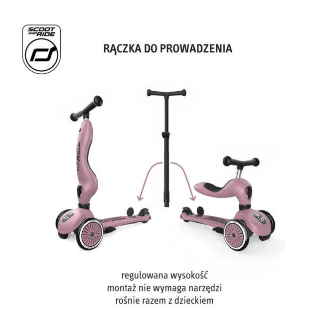 Highwaykick 1 Push and Go wyposażona jest w regulowany (3 wysokości) kijek do pchania,