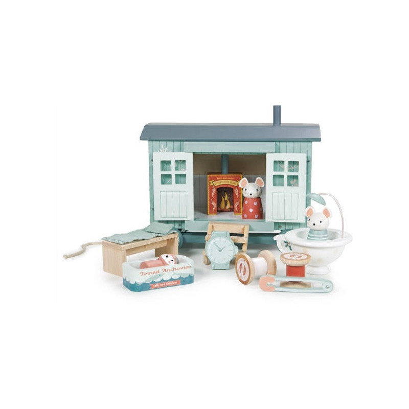 Drewniana pasterska chatka to idealna domek dla mysiej rodzinki.