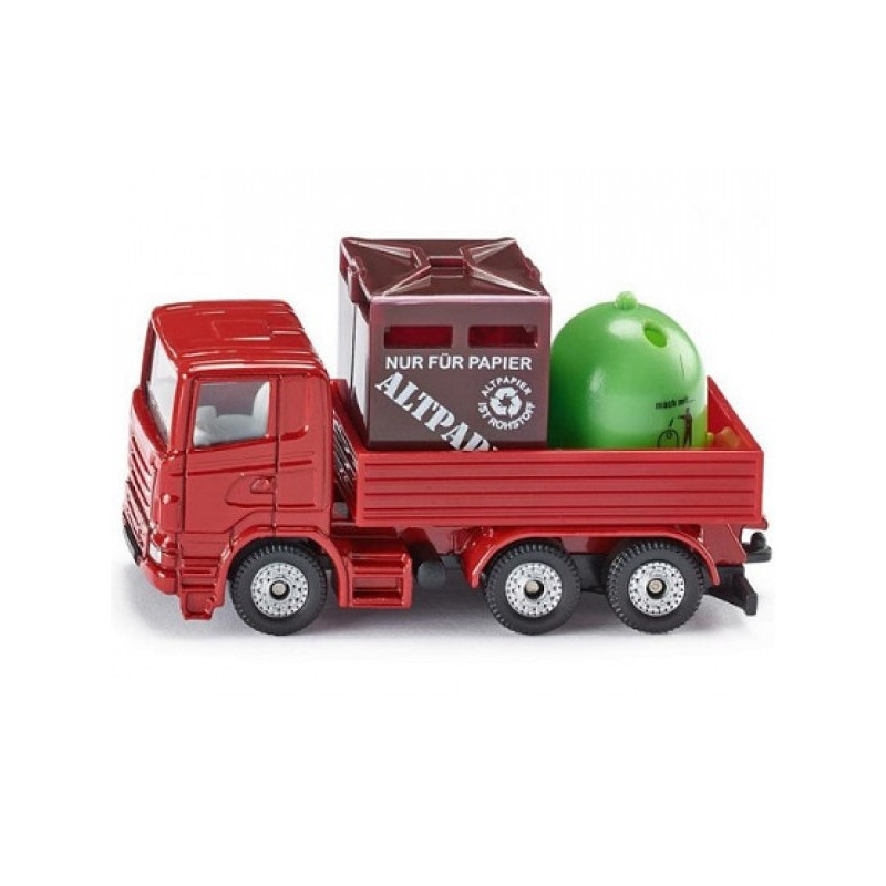 CIĘŻARÓWKA Z POJEMNIKAMI NA ODPADY autko metalowe 8 cm
