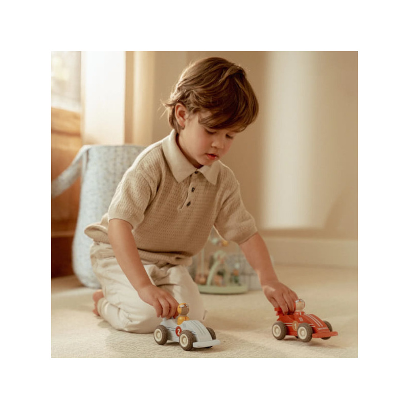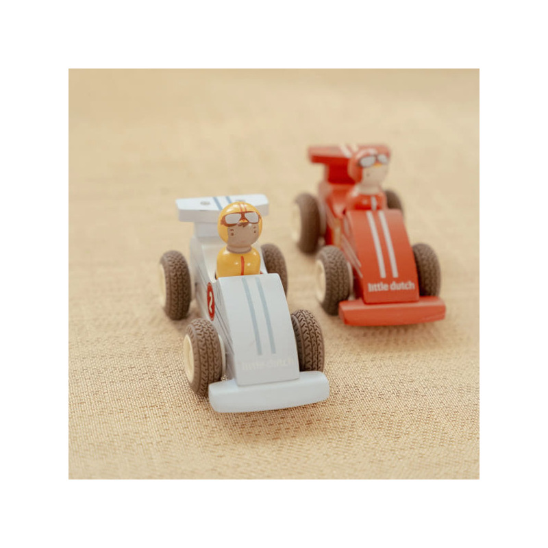 DREWNIANE SAMOCHODY WYŚCIGOWE zestaw 2 szt. FSC Little Dutch 18msc+