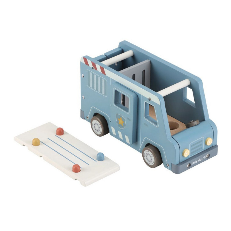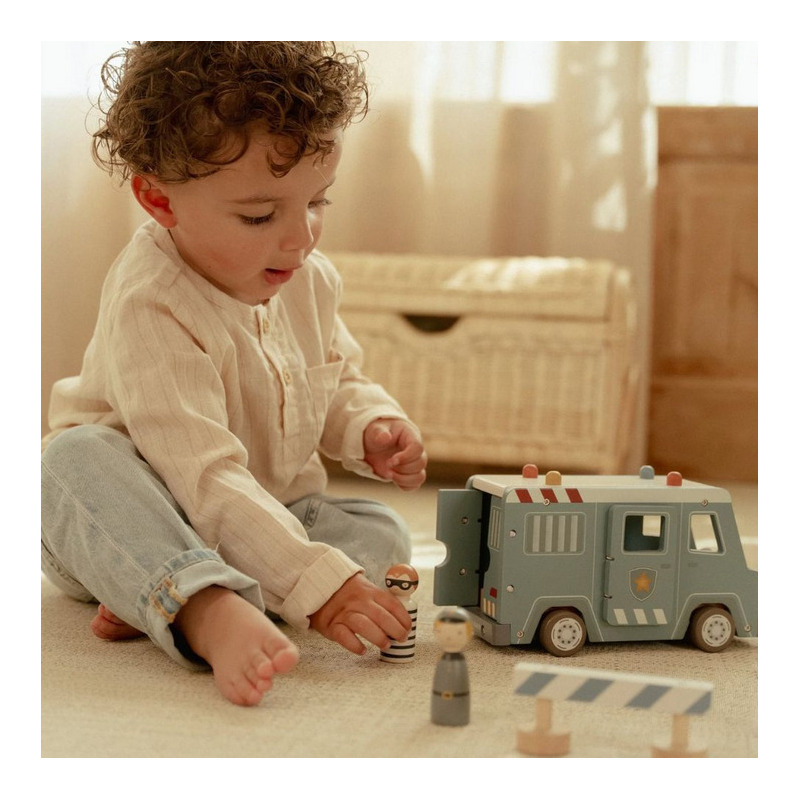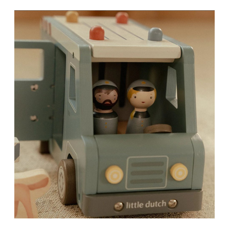 WÓZ POLICYJNY drewniany samochód z figurkami i akcesoriami FSC Little Dutch 2+