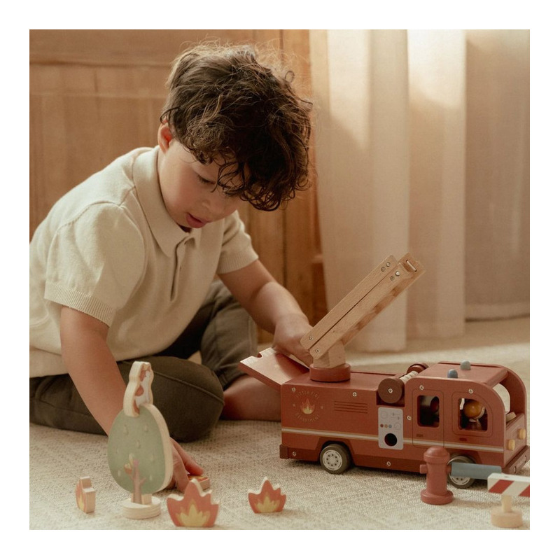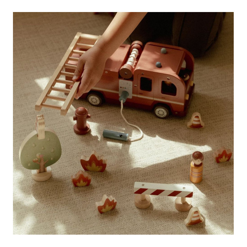 STRAŻ POŻARNA drewniany samochód z figurkami i akcesoriami FSC Little Dutch 2+
