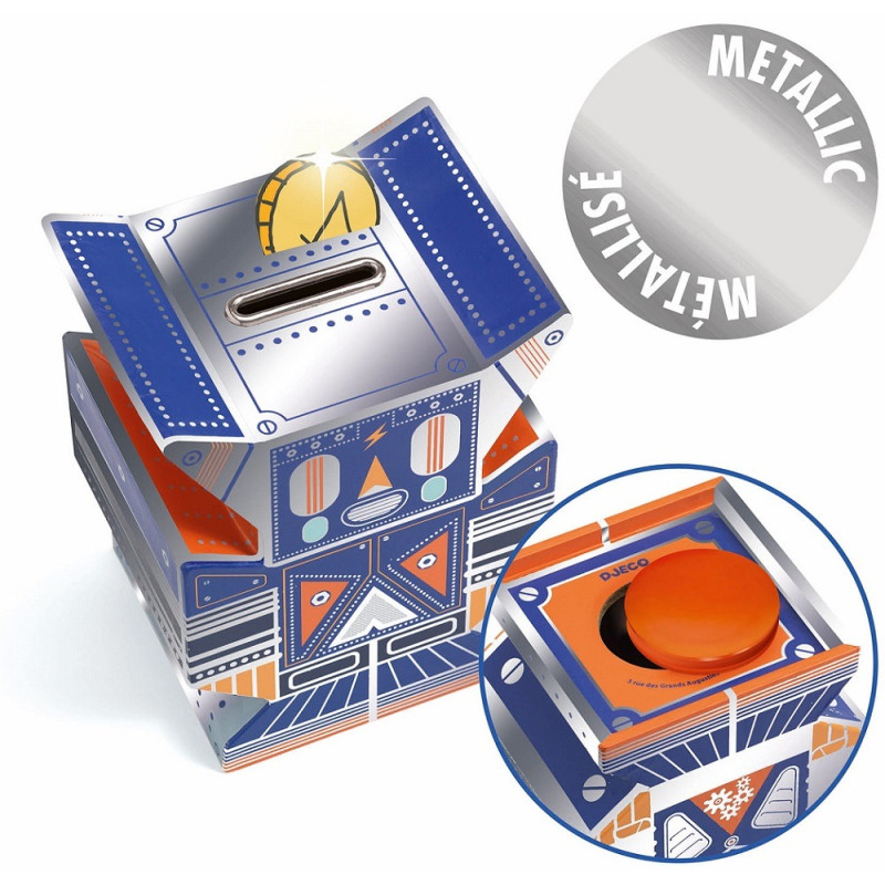 Skarbonka z metalicznym połyskiem nauczy dziecko oszczędzania.