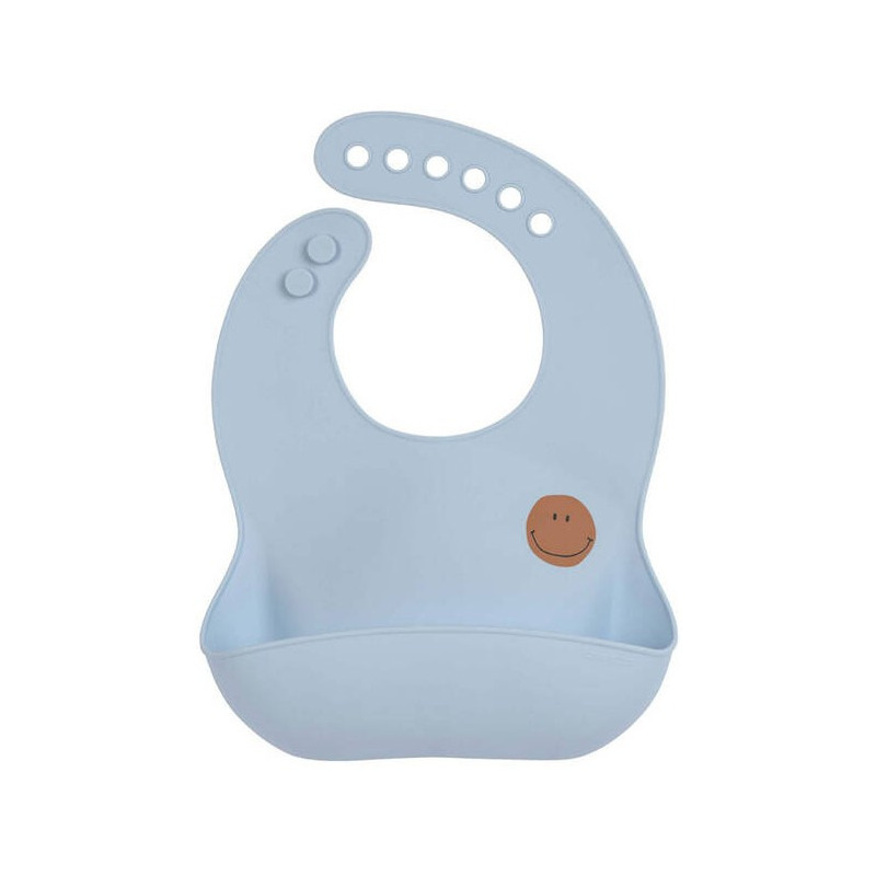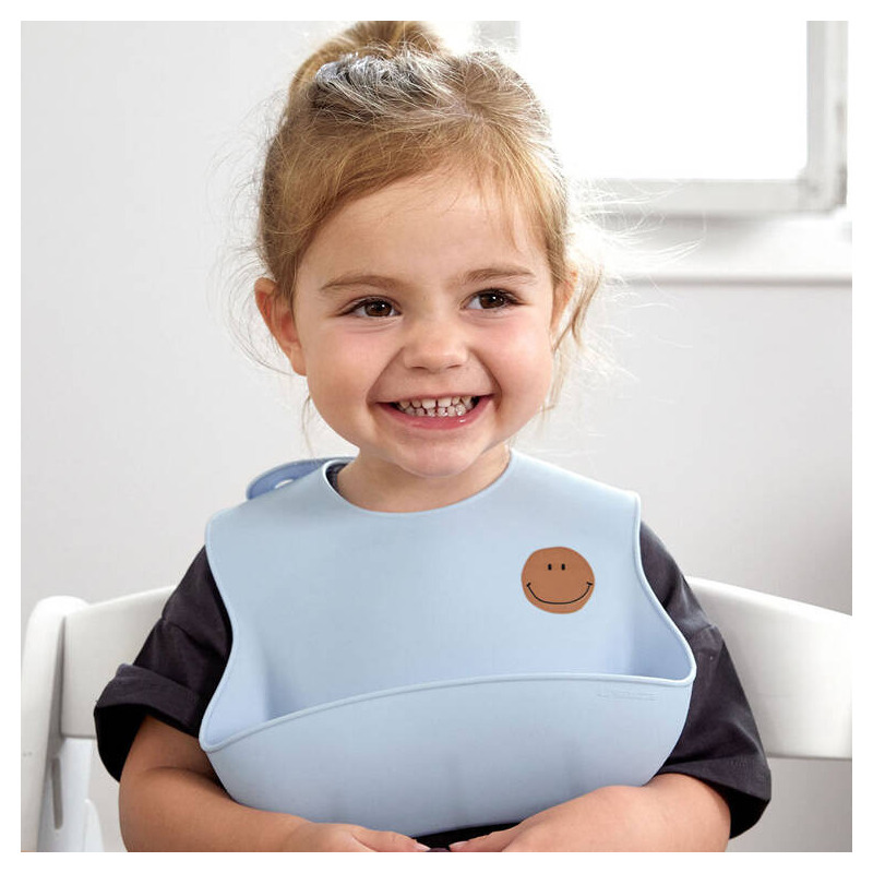 SMILE niebieski silikonowy śliniak z kieszonką Happy Rascals sky blue