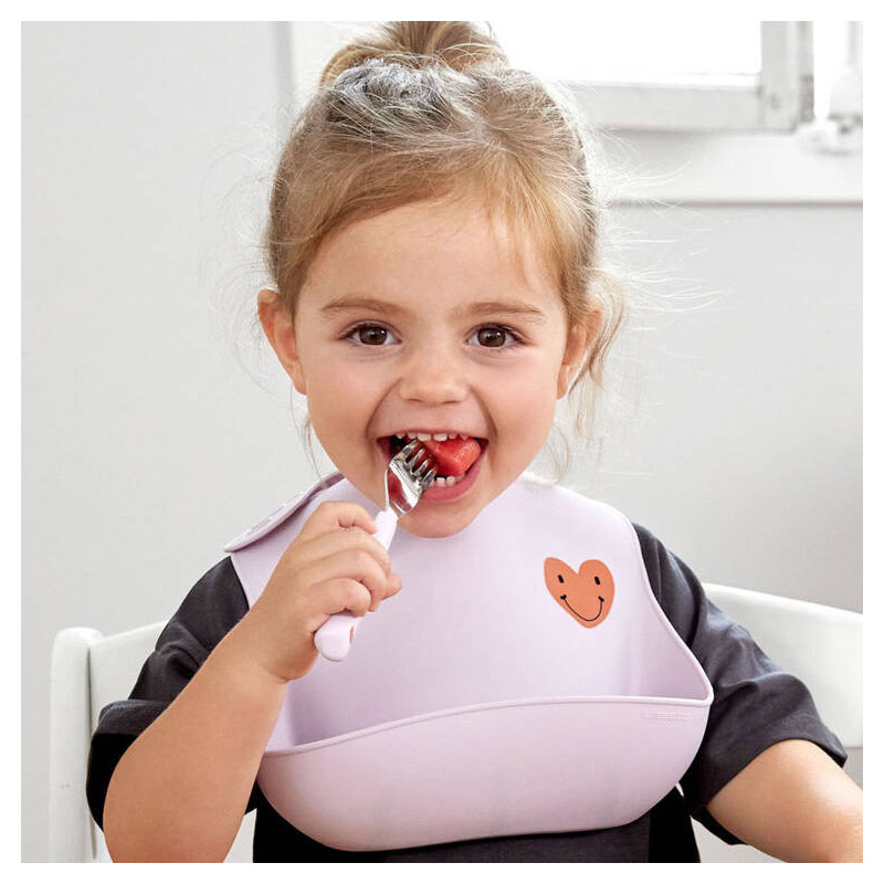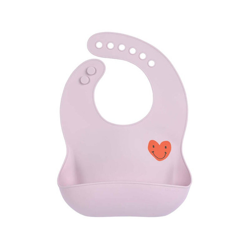 HEART różowy silikonowy śliniak z kieszonką Happy Rascals lavender