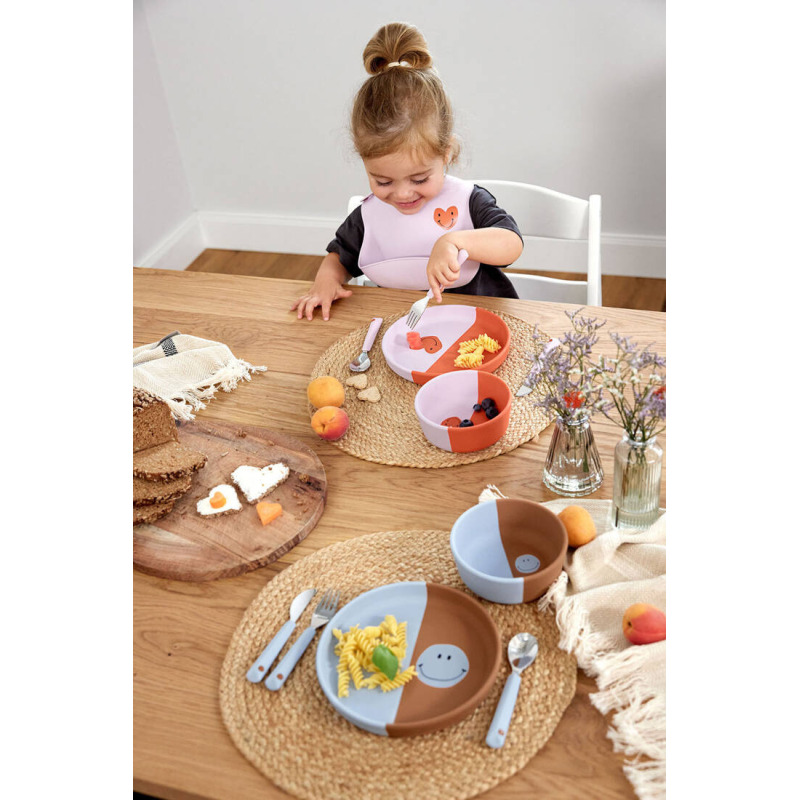 Dzięki miękkiemu, silikonowemu śliniakowi w kolorze różowym cały posiłkowy bałagan wpadnie do kieszonki! Proste zapięcie z regulowaną szerokością nie uwiera i nie krępuje ruchów dziecka, a przy tym utrzymuje śliniak we właściwym miejscu.