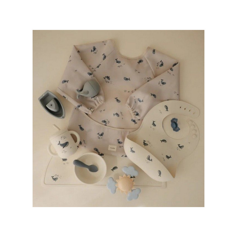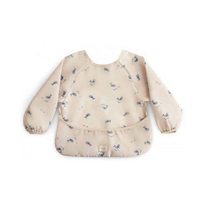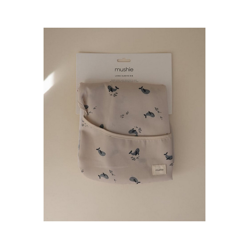 WHALES śliniak z długim rękawem i kieszonką Mushie 6m+