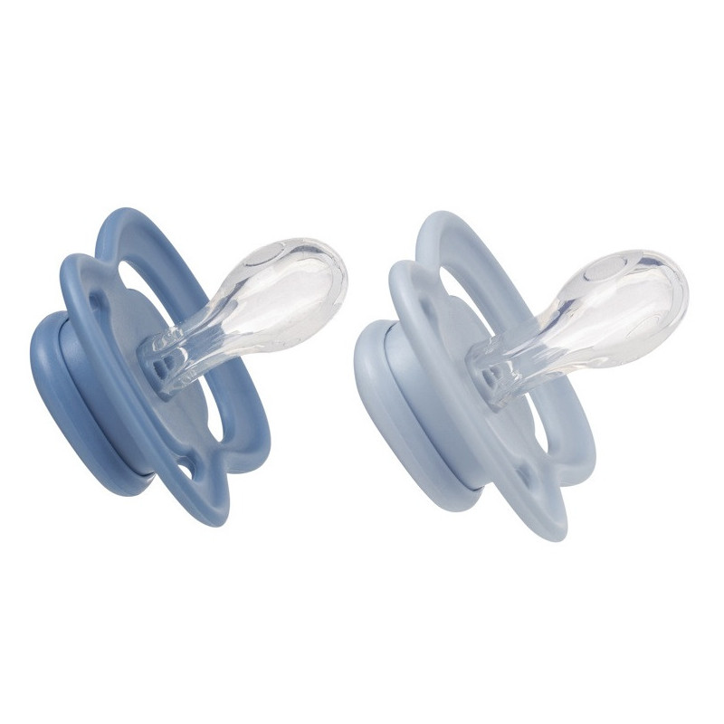 SYMETRYCZNY SMOCZEK SILIKONOWY zestaw 2 szt. niebieski/błękitny 0-6 m.