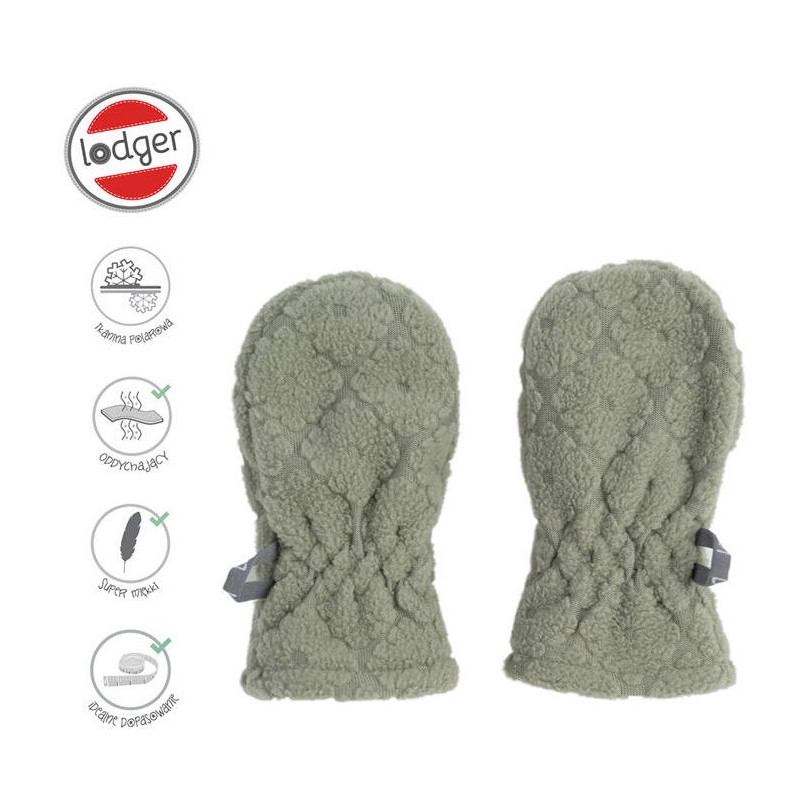 Rękawiczki dziecięce z polaru w kolorze szałwiowym.