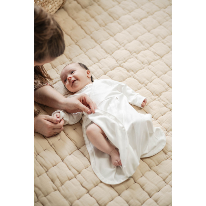 Śpiworek wykonany z czystego, wysokogatunkowego dżerseju z bawełny organicznej, zapewnia miękkość, przewiewność i trwałość.