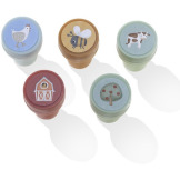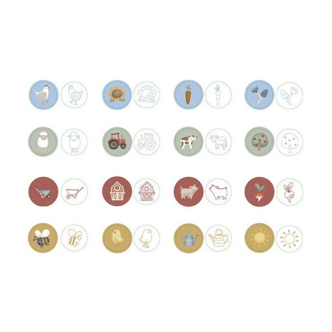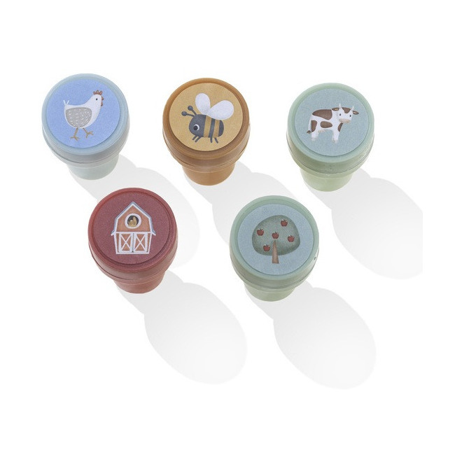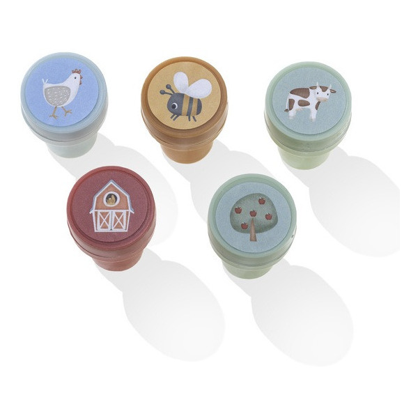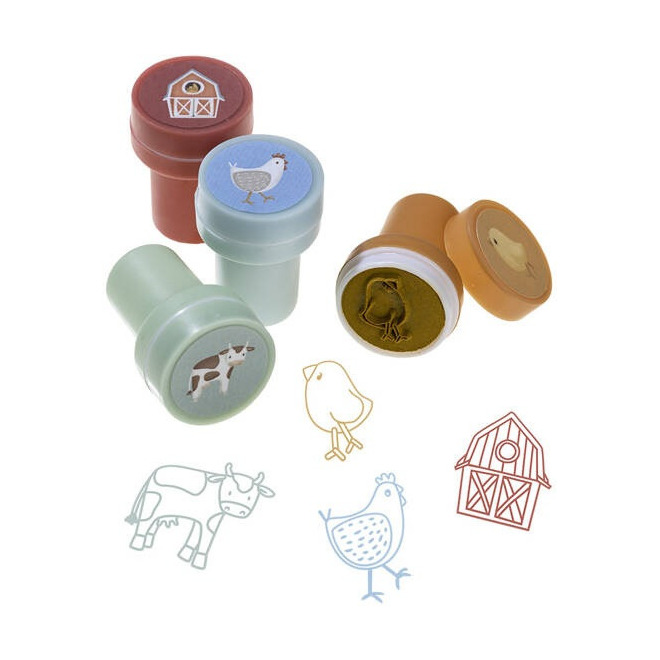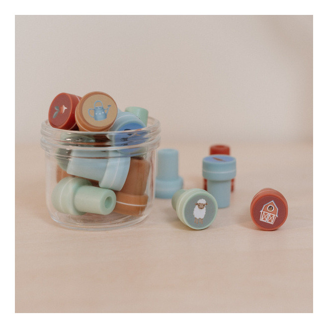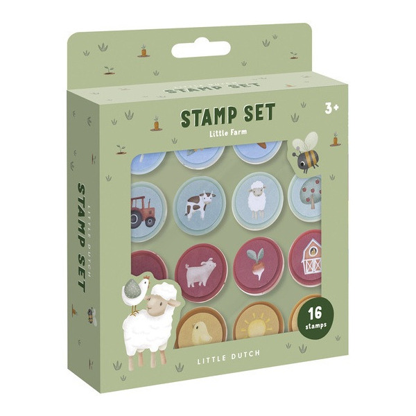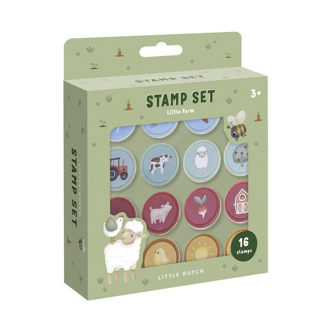 Zestaw pieczątek Little Farm od Little Dutch pozwoli Twojemu maluchowi stworzyć własną farmę pełną przygód. Zestaw zawiera 16 różnych pieczątek z uroczym zwierzątkami, w tym krowę, owieczkę i kurczaczka, a także traktor, stodołę i pszczołę.