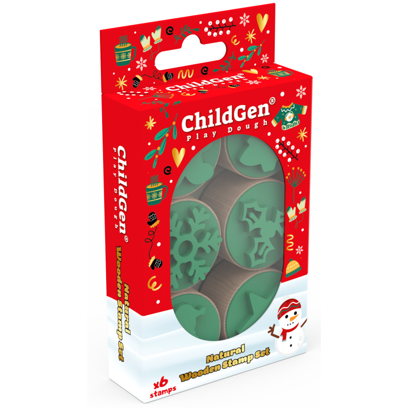 ŚWIĄTECZNE STEMPELKI drewniane stemple do modelowania ciastoliny i ćwiczenia motoryki małej ZESTAW 6 sztuk ChildGen 3+