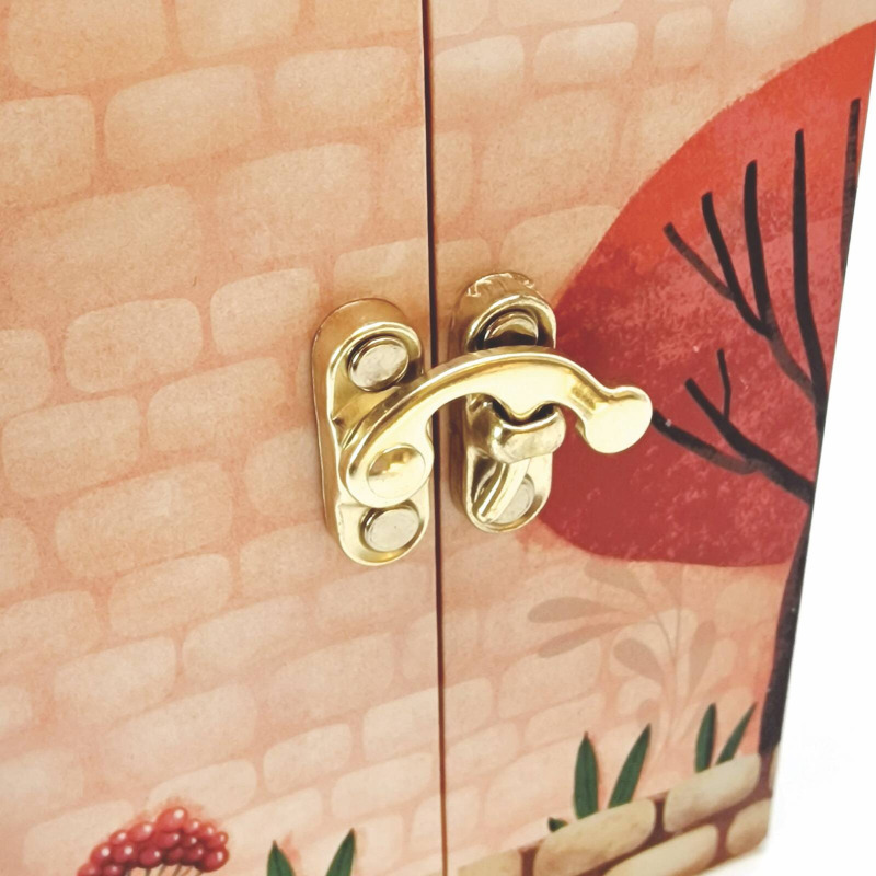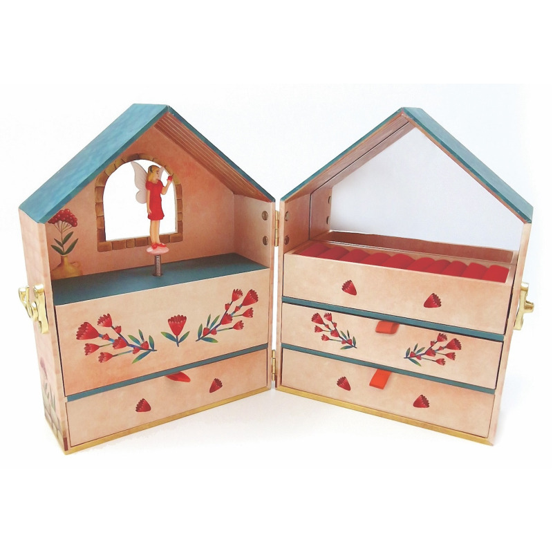 Szkatułka ma postać pięknie zdobionego zamku, inspirowanego graficznie kolekcją „Fairy House”, zamykana na zameczek, z lusterkiem w środku.