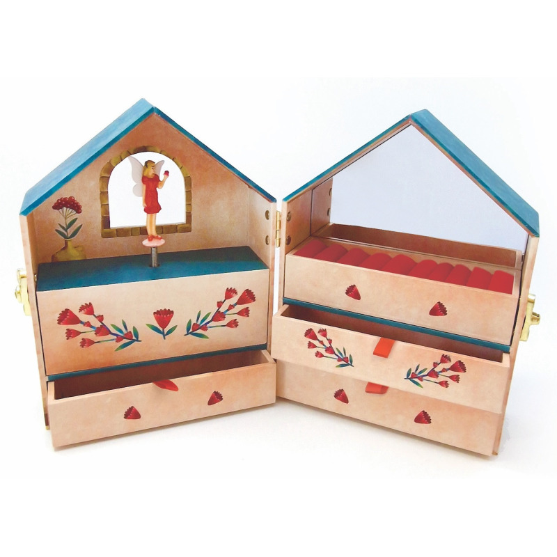 Czarujące i olśniewające pudełko na biżuterię i drobne skarby w pełnej uroku odsłonie – z tańczącą wróżką i pozytywką. Cofnij się w czasie do pięknego świata bibelotów, które dodadzą życiu nieco prawdziwej magii.