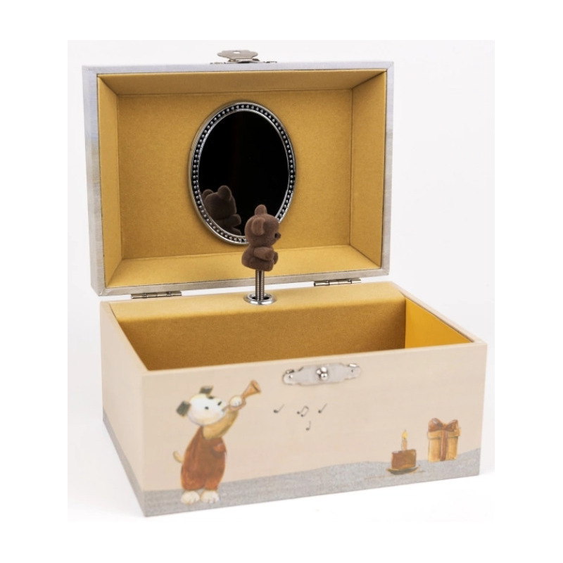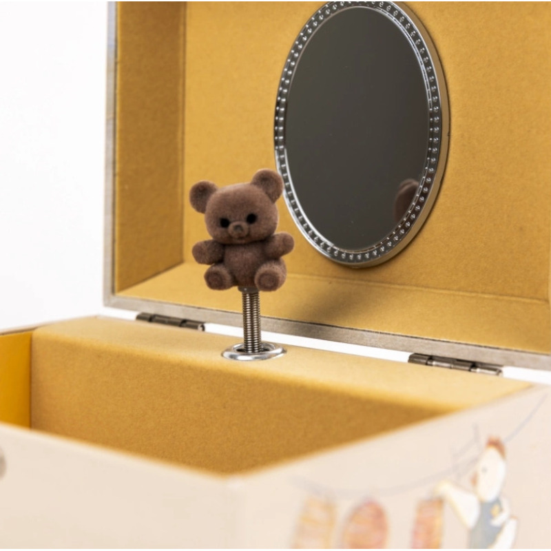 Idealne miejsce na wszystkie niezwykłe skarby! Od teraz gumek, spineczek i pierścionków będzie pilnować śliczny miś, który po otwarciu skrzyneczki zatańczy przeglądając się w lusterku.