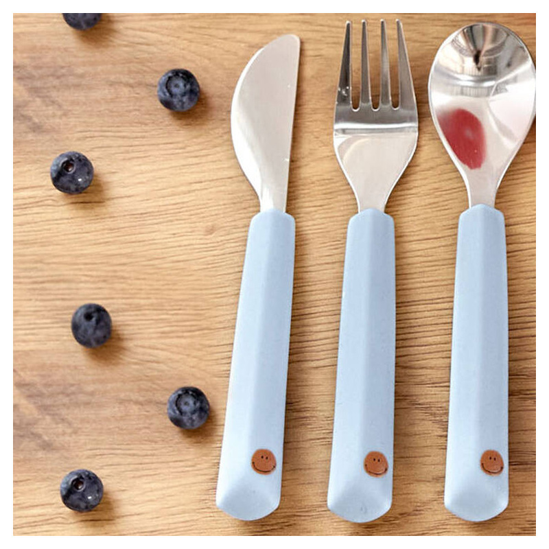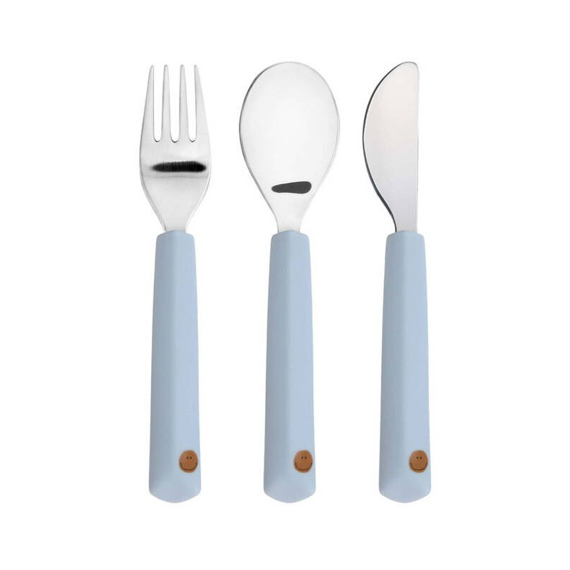 SMILE zestaw sztućców ze stali nierdzewnej 3-częściowy, widelec, łyżka, nóż Happy Rascals sky blue
