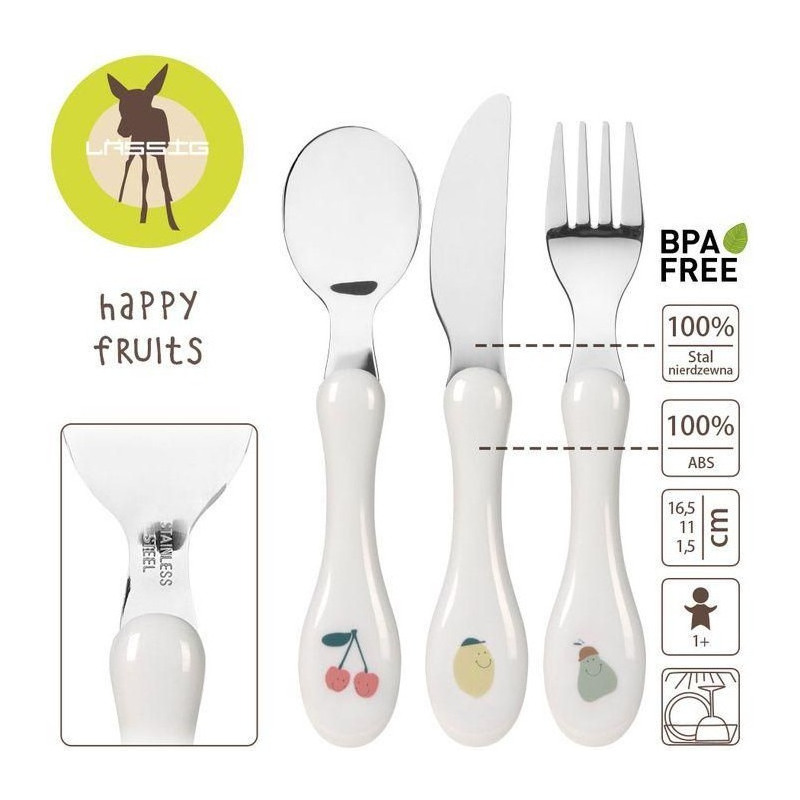 Zestaw sztućców ze stali nierdzewnej 3-częściowy, widelec, łyżka, nóż Happy Fruits Lassig 12m+