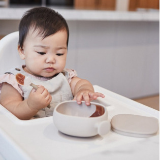 CROCO szary silikonowy talerzyk z przegródkami na przekąski